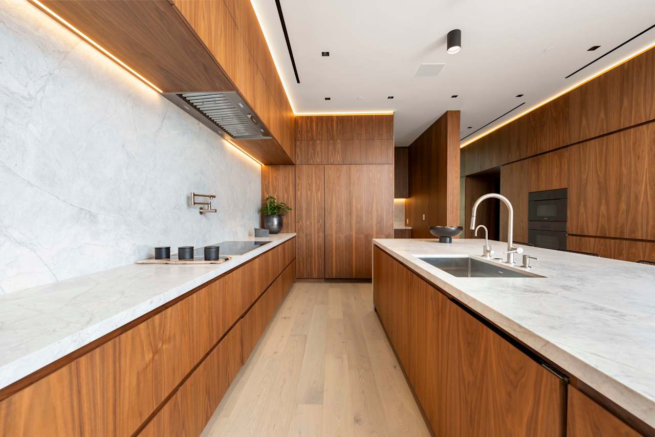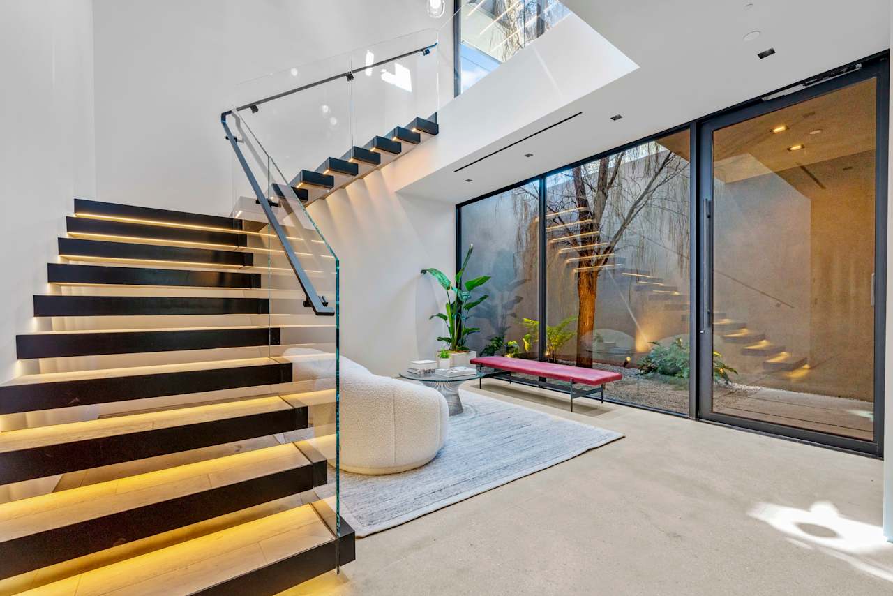 The 1735 Hanscom residence is a magnificent 3 story modern home that boasts five bedrooms and six and a half baths, offering ample space for comfortable living. The kitchen is a chef's dream, featuring stone countertops, elegant walnut millwork, and even a prep kitchen to ensure seamless culinary experiences. The dining room is a captivating centerpiece with its two-story clear glass wine cellar that spans down to the lower level entertainment room and bar, adding an element of sophistication and luxury. For those seeking an active lifestyle, the residence offers a full gym to stay fit and healthy, along with a spa complete with steam and massage room for ultimate relaxation.