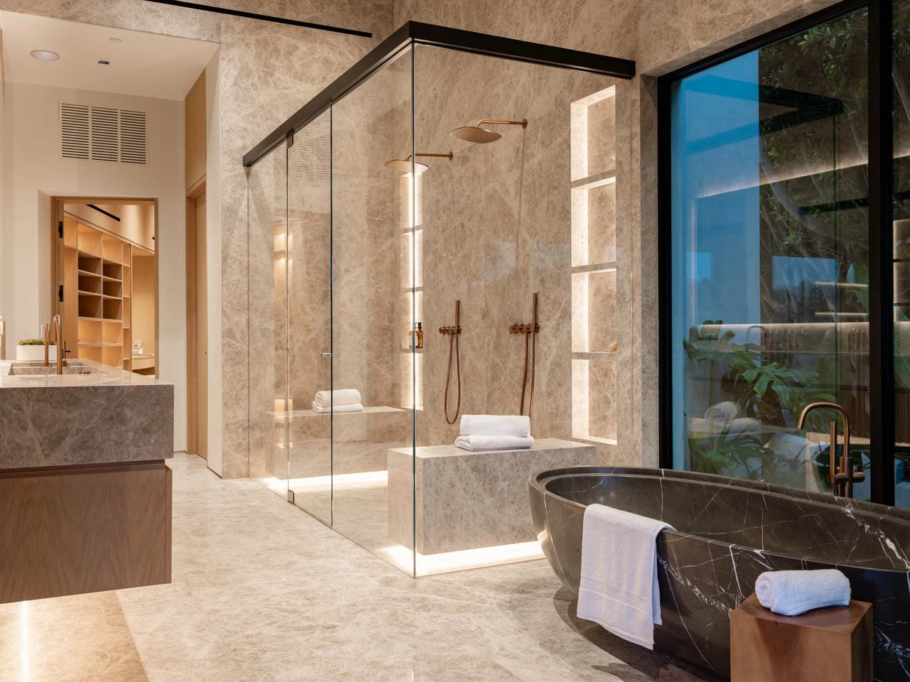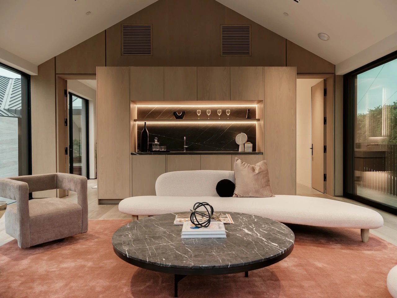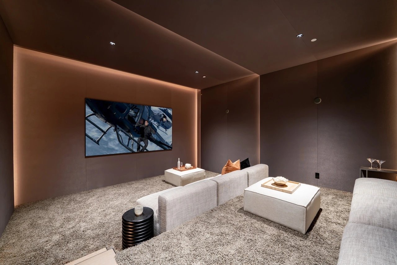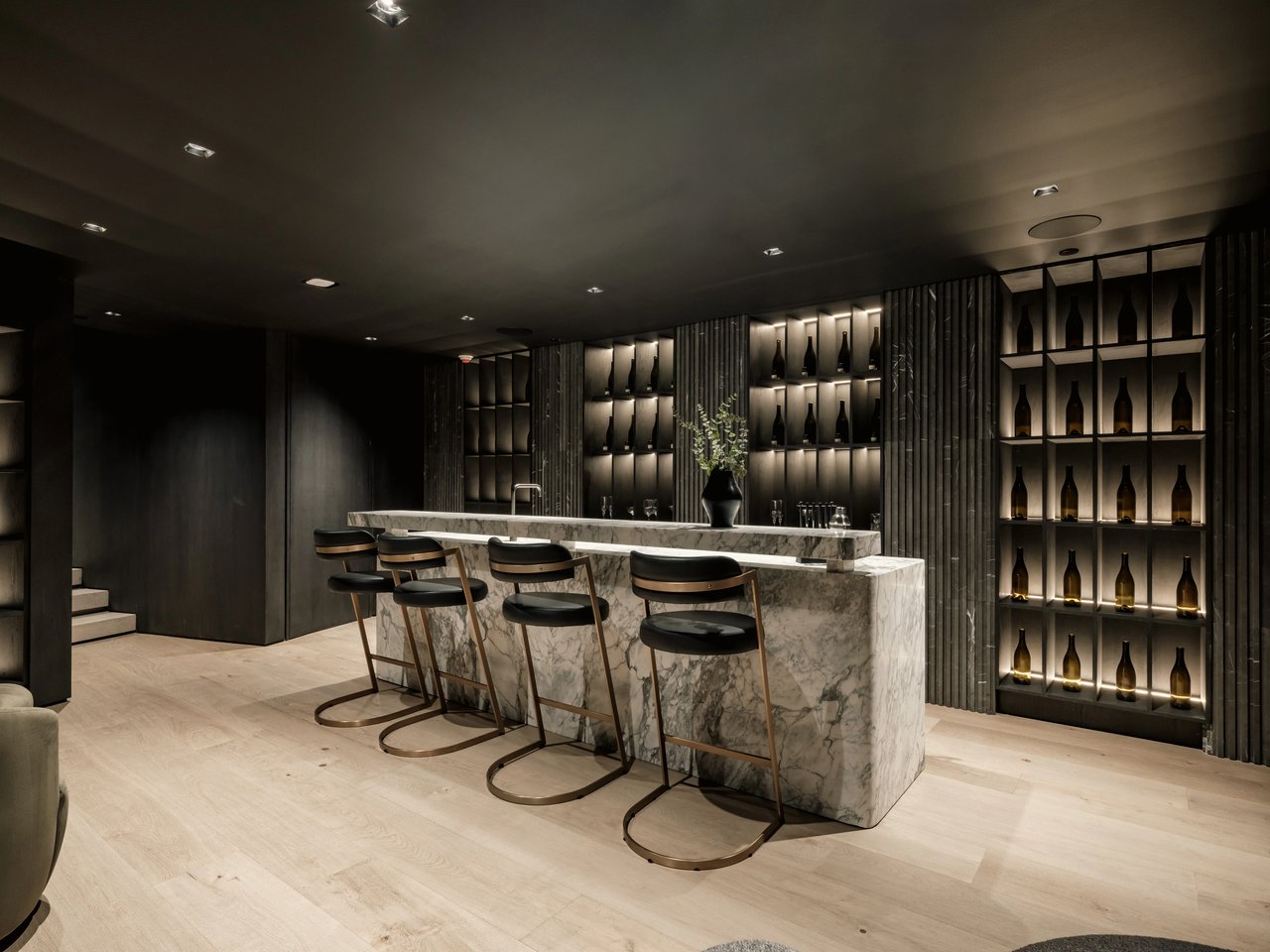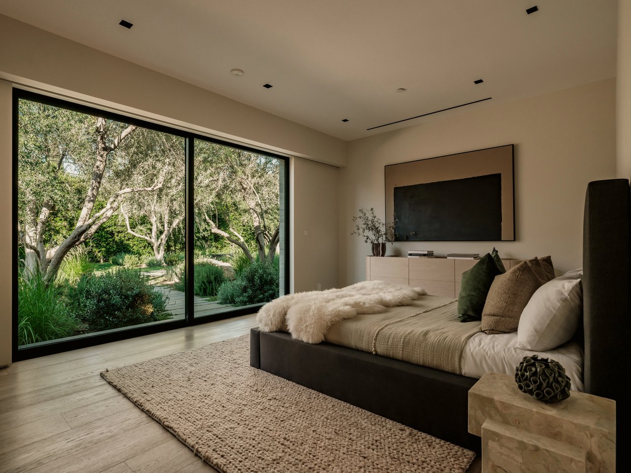 Within this modern masterpiece, every detail has been meticulously considered to create an unparalleled living experience. The kitchen boasts stone countertops and Italian millwork, while the dining room is graced by a transparent glass wine cellar, adding an element of artistry to the culinary journey. Entertainment is at its pinnacle with a dedicated theater and a well-appointed bar. Embracing sustainable living, the residence showcases state-of-the-art eco-friendly features, epitomizing modern luxury in harmony with the environment. Fleetwood floor-to-ceiling windows and doors seamlessly connect indoor and outdoor spaces, leading to an inviting entertaining deck complete with a fire pit, full outdoor kitchen, and a private cabana. The expansive saltwater pool beckons for leisurely dips and refreshing relaxation.
